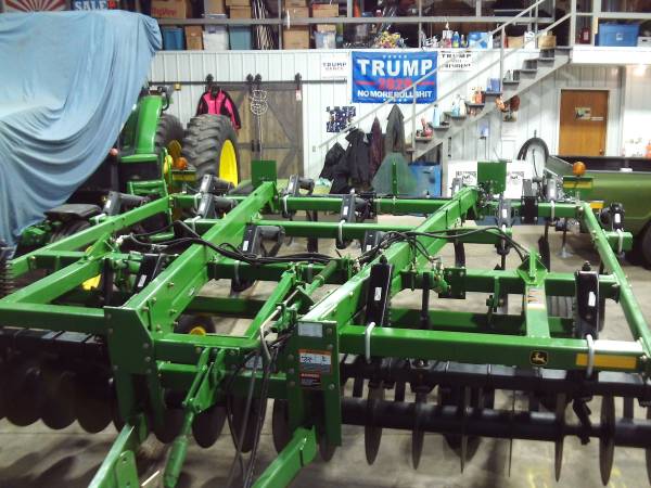 JD 714 11 shank chisel plow, hydraulic disc gangs, tru depth shanks, 4 inch shovels, newer light kit, walking tandems, good tires, very nice condition, 1 owner, believe to be the original shovels yet, shanks are very tight, has the rear leveler, everything is like new, hard to find 11 shank with walking tandems. call six08/four98/two882