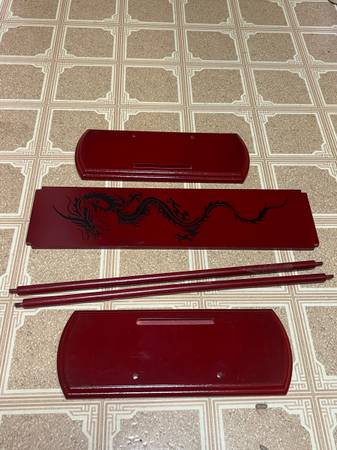 It consists of 5 pieces that insert into one another, to form a stand for displaying each of the owner’s belts as they progress through martial arts. A few minor scratches and tarnished spots in the...